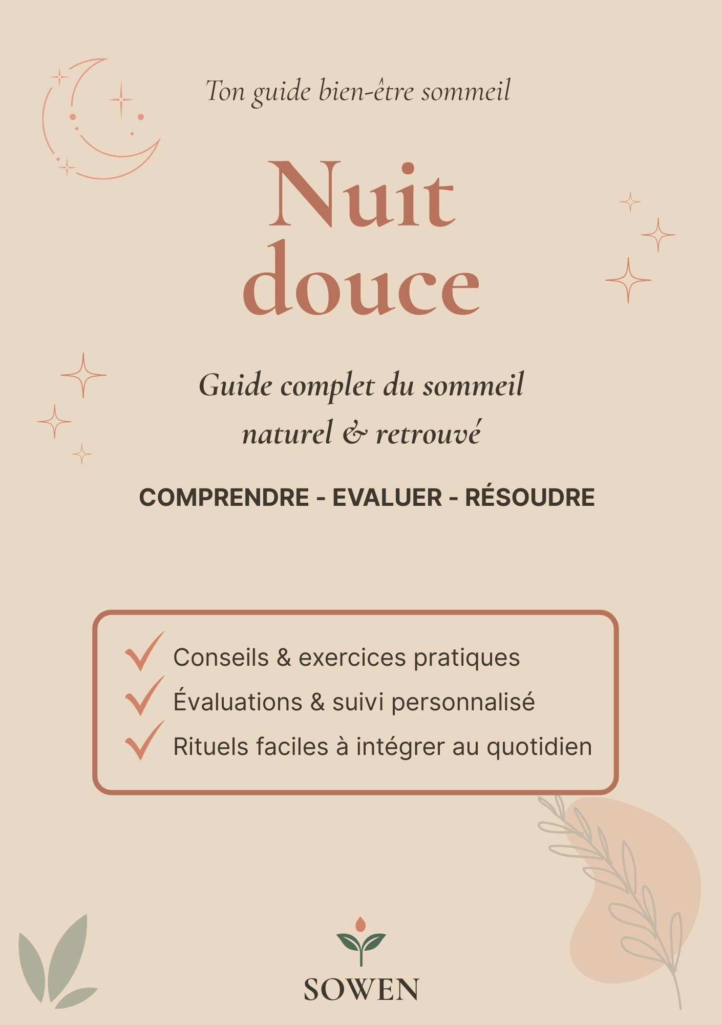 Combine ce rituel avec les conseils de ton Guide du sommeil – Nuit Douce pour ancrer de bonnes habitudes et profiter d’un effet optimal.